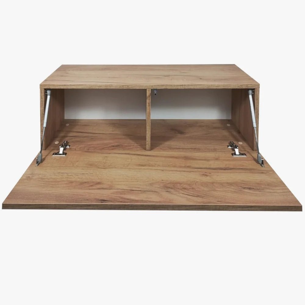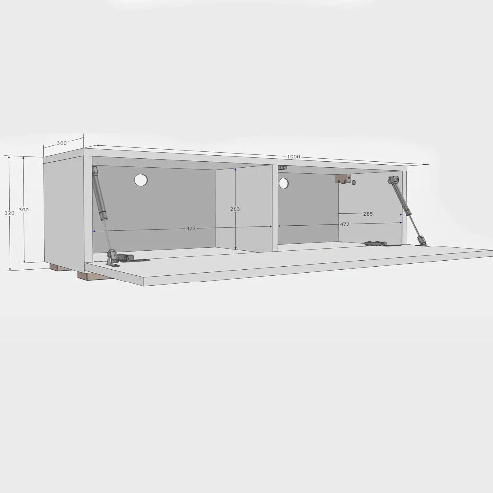 Les charnières amorties avec push-to-open te donnent un accès tranquille, sans poignée qui dépasse ni portes qui claquent. Les panneaux E1 gardent l’ensemble stable, ce qui rassure si tu as des enfants qui courent partout. Et le passe-câbles intégré aide à garder un coin multimédia plus net, plus simple, bref plus agréable à vivre.