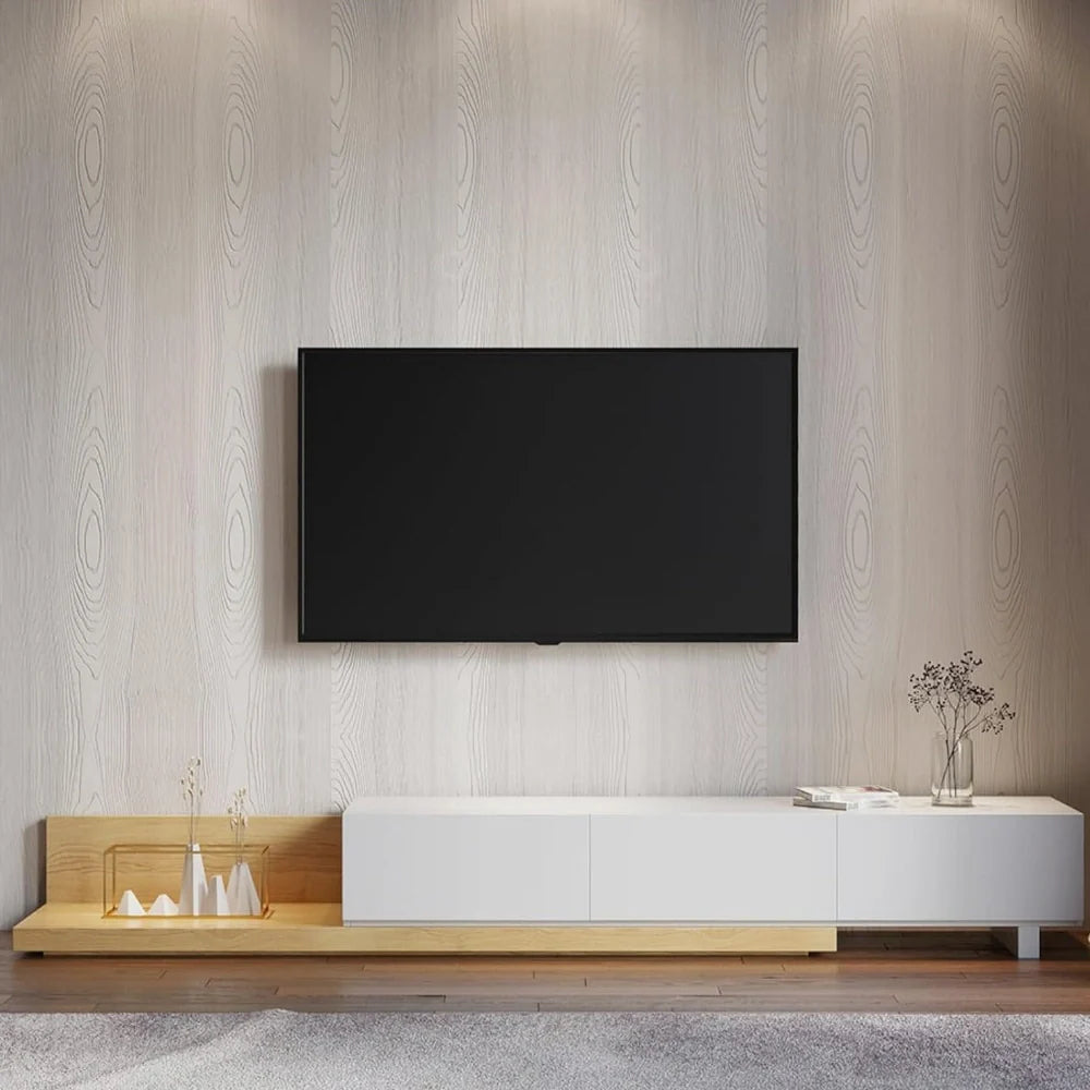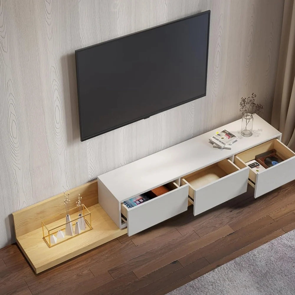 Ce meuble tv suspendu chêne massif apporte ce petit côté chaleureux qui manque souvent dans un salon. Le plateau qui s’étire, c’est un peu comme un pote qui t’aide à déménager, toujours là quand tu en as besoin. Tu l’ouvres, tu ajustes la longueur, tu poses ton écran et tu ranges tout ce qui traîne, sans te prendre la tête. Le mélange bois naturel et blanc donne un rendu propre, apaisant, parfait pour un coin télé où tu souffles un peu.